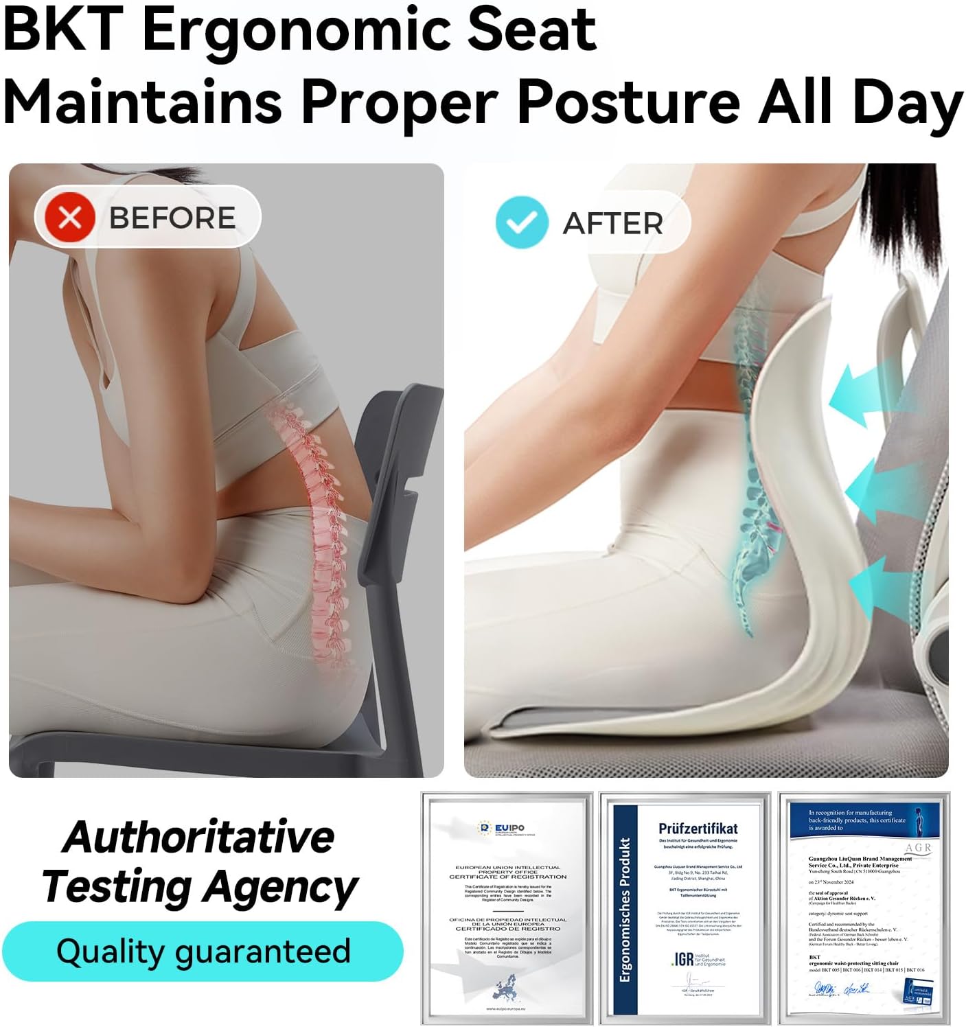 BKT Seat Cushion Chair Ergonomic Office Chair Cushions Lumbar Support for Seat Pillow Ideal for Students Office Workers Nursing Mothers Long Sitting Outdoor Fishing Floor (Grey)