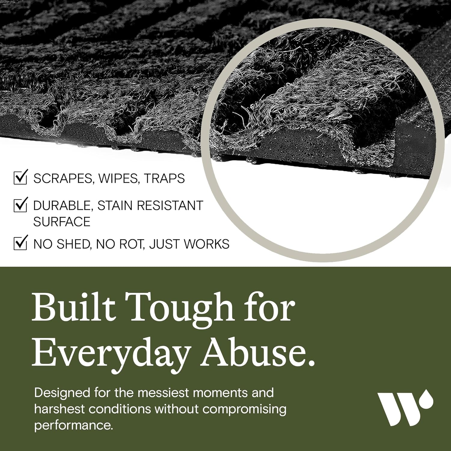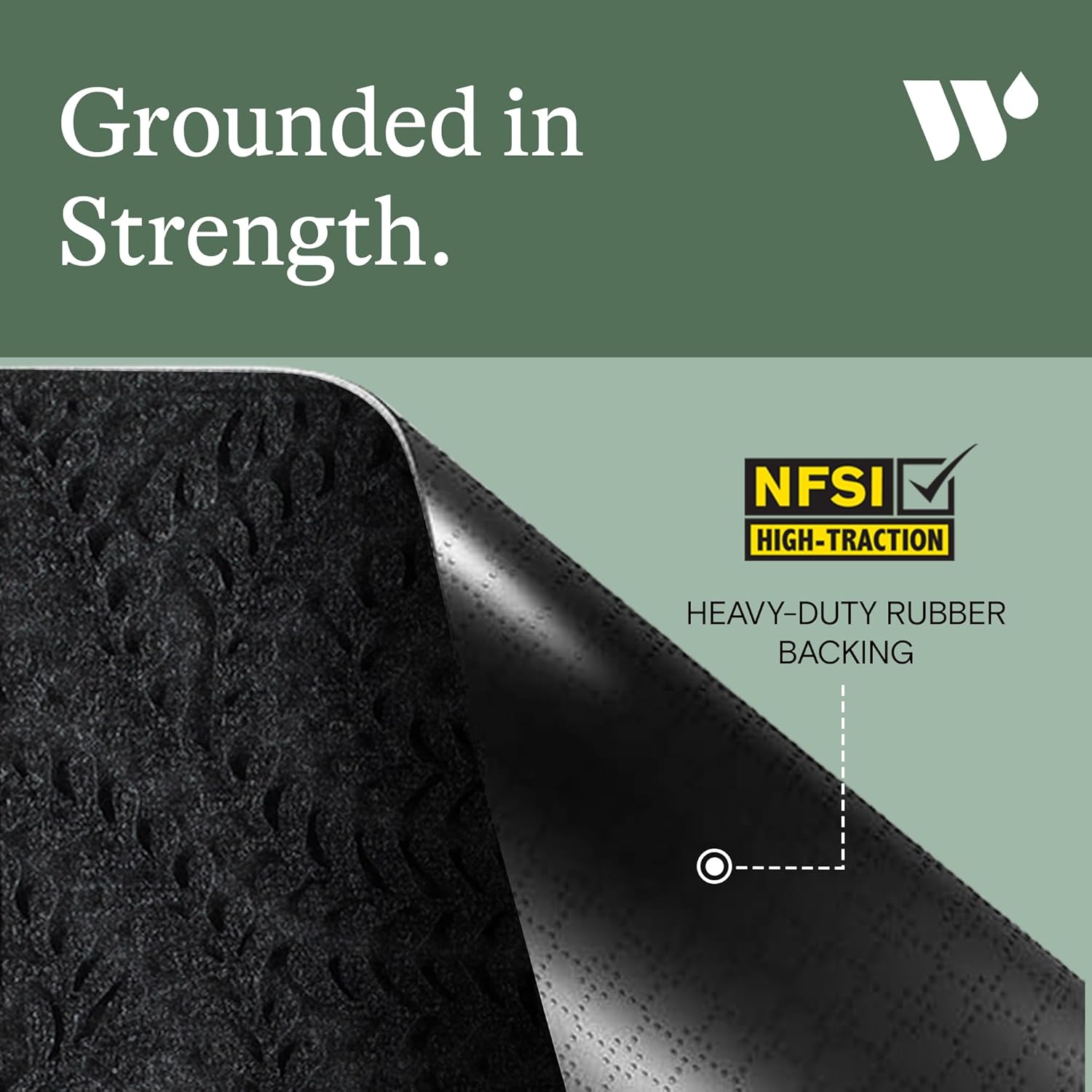 Features a non-skid SBR rubber backing made with 20% recycled rubber