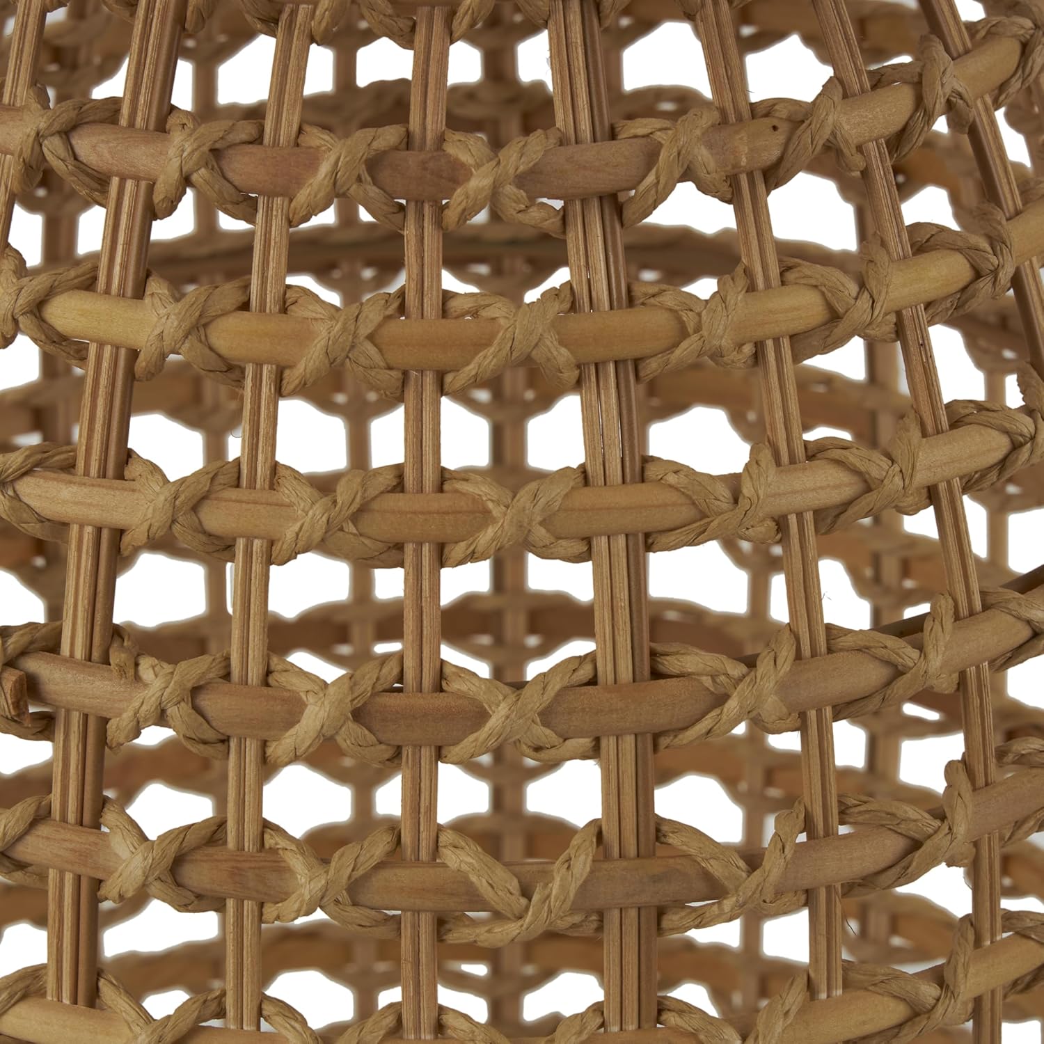 This bohemian vase for home decor is woven with paper string and rattan in a secure pattern along a structured metal frame to ensure long-term use. Oiled brown vase for decoration has a round shape with an open-style frame, handmade with an intricately woven geometric grid pattern and wrapped vase opening. Wipe clean with a dry cloth. Place this brown centerpiece vase on a console table to display fresh greenery or use it as a striking decorative accent piece. Designed with felt or rubber stoppers at the base that prevent scratching furniture and table tops, as well as sliding around. This item ships in 1 carton. Rattan vase makes a great gift for any occasion. Due to the handmade nature of this item, no two will be alike, there will be slight differences in shape, size, and color. Suitable for indoor use only. This item ships fully assembled in one piece. This is a single brown colored vase. Bohemian style. Vase has a 1.10 in mouth opening.