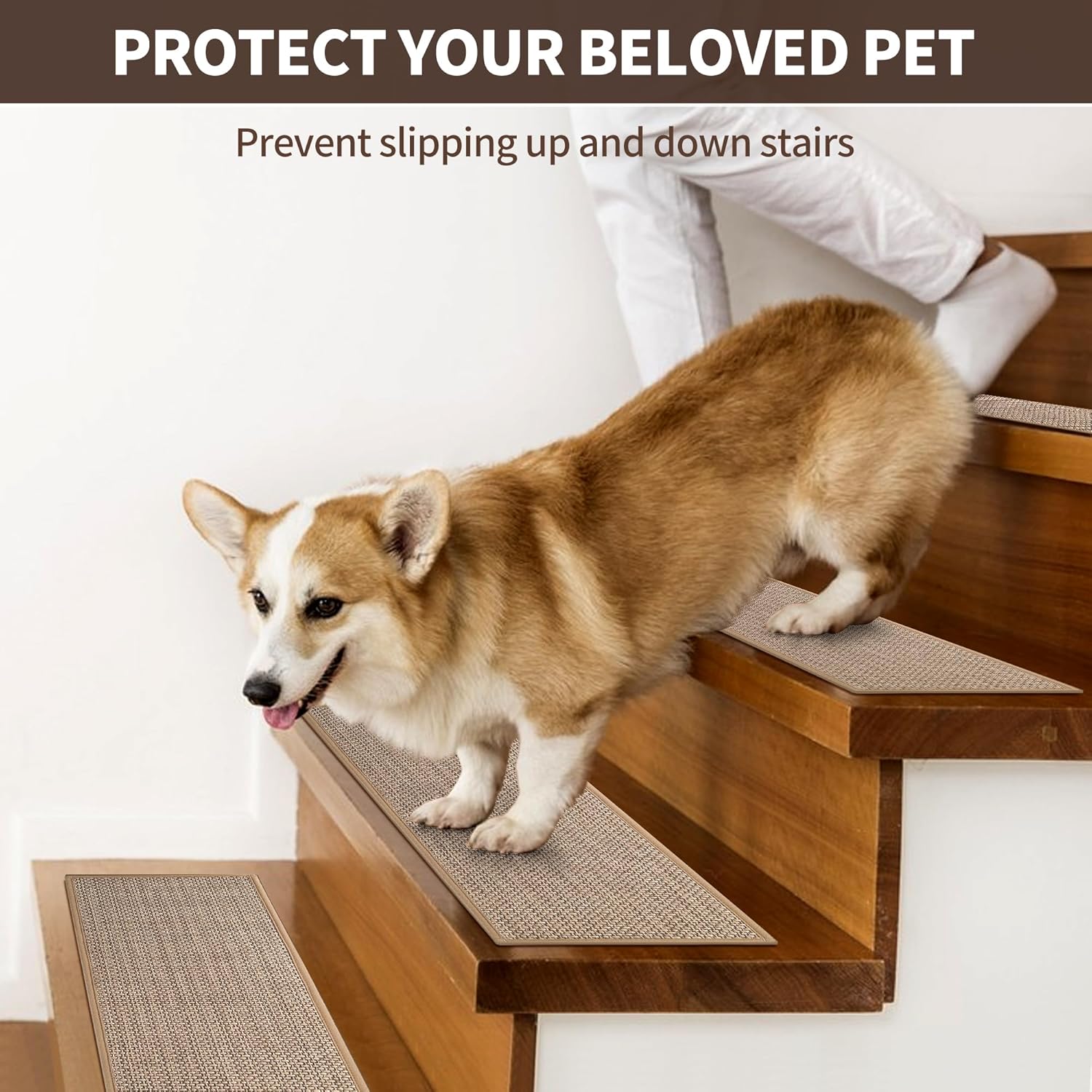 Linen Stair Treads for Wooden Steps Indoor 30x8 inch, 15pcs Upgraded Self Adhesive Backing Non Slip Stair Carpets, Peel and Stick Stair Runner Rugs, Reusable Staircase Step Treads(Beige)